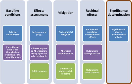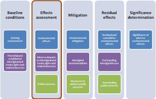 - Potential environmental effects (section 10.1), adverse impacts on potential or established Aboriginal and Treaty rights and related interests (section 10.2) and public concerns (section 10.3);