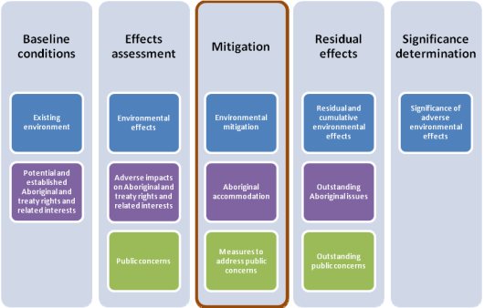 - Specific suggestions raised by Aboriginal groups for mitigating the potential adverse impacts of the project on potential or established Aboriginal and Treaty rights and related interests in relation to environmental effects specified in sections 10.1.2 and 10.1.3;