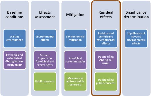 - Potential residual and cumulative environmental effects (section 12.1); outstanding Aboriginal issues (section 12.2) and outstanding public concerns (section 12.3);